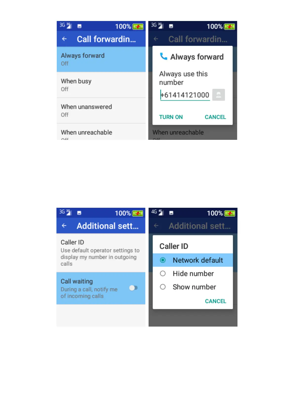 Additional settings – Within additional settings you can adjust the caller ID settings
