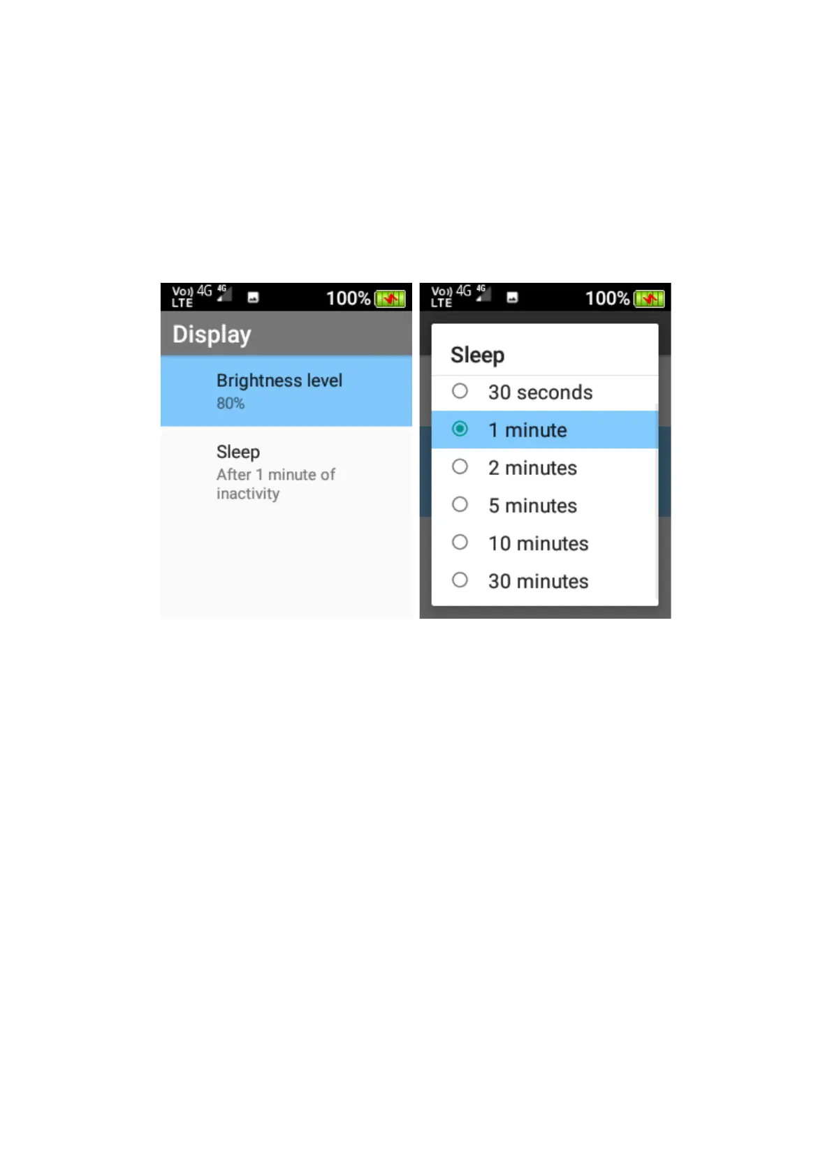 Sleep – Here you can adjust the screen timeout timer. Press ok and then highlight