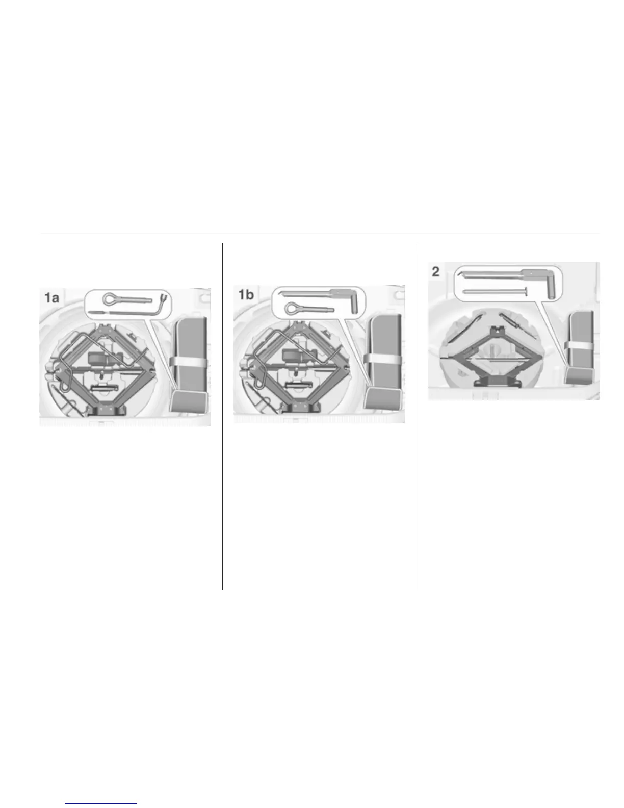 The jack, the tools and the towing eye