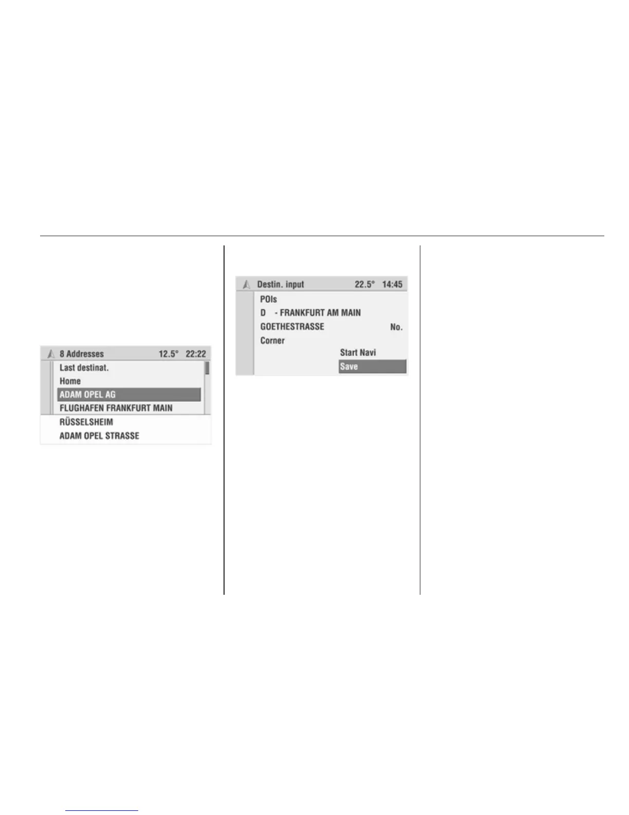 Saving destinations in the address