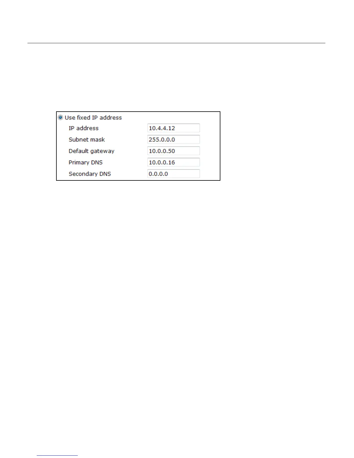 1. Select the Use fixed IP address option.
