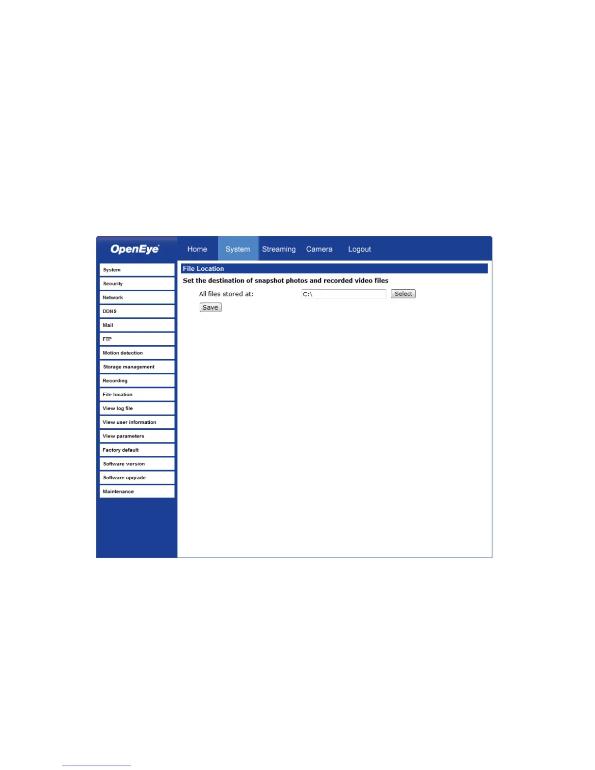 The camera supports a JPEG snapshot function. You can specify a storage location for