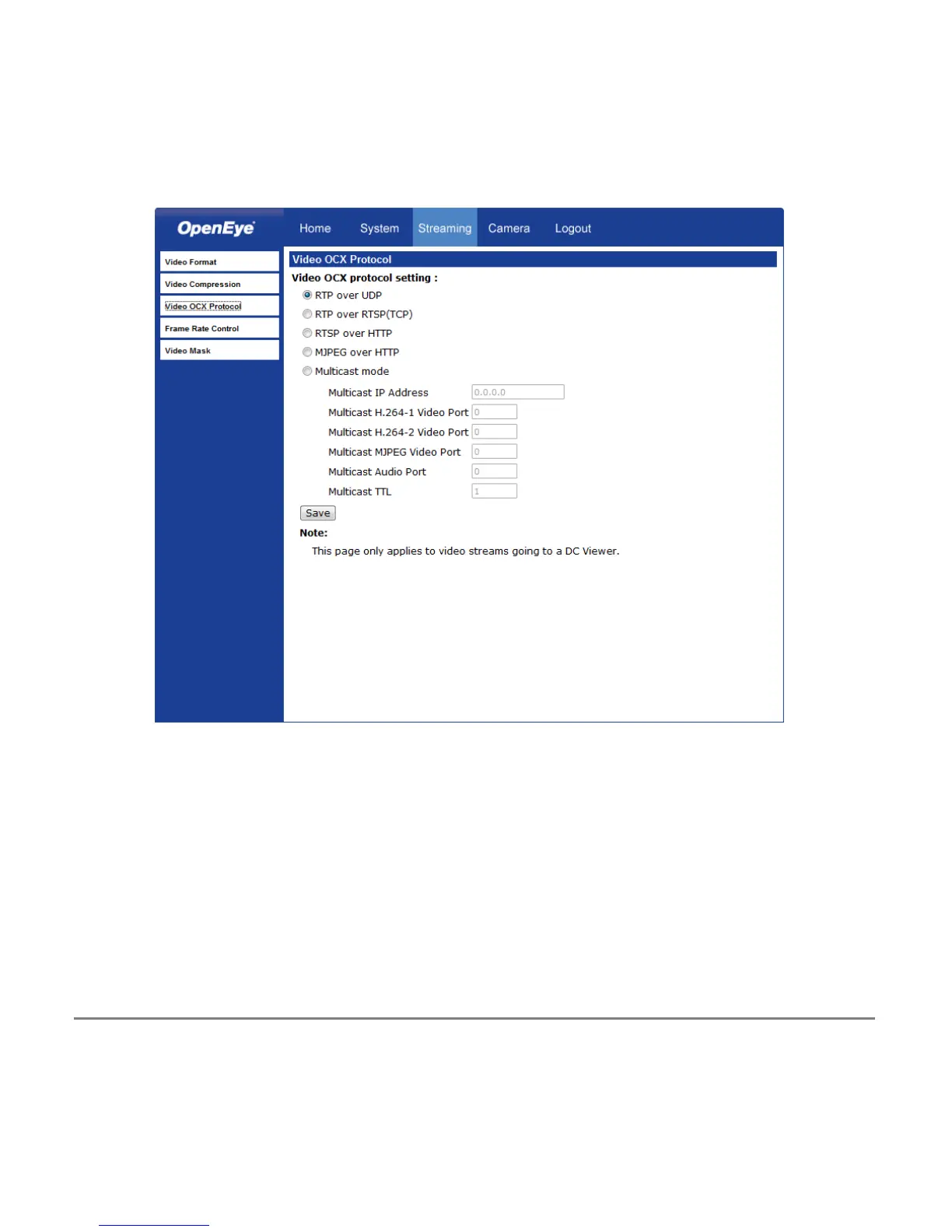 On the Video OCX protocol page, you can select different protocols for streaming media