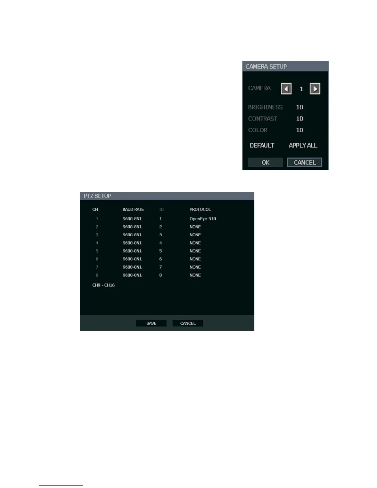 BAUD RATE – Sets the port information for the connected camera. [Consult the