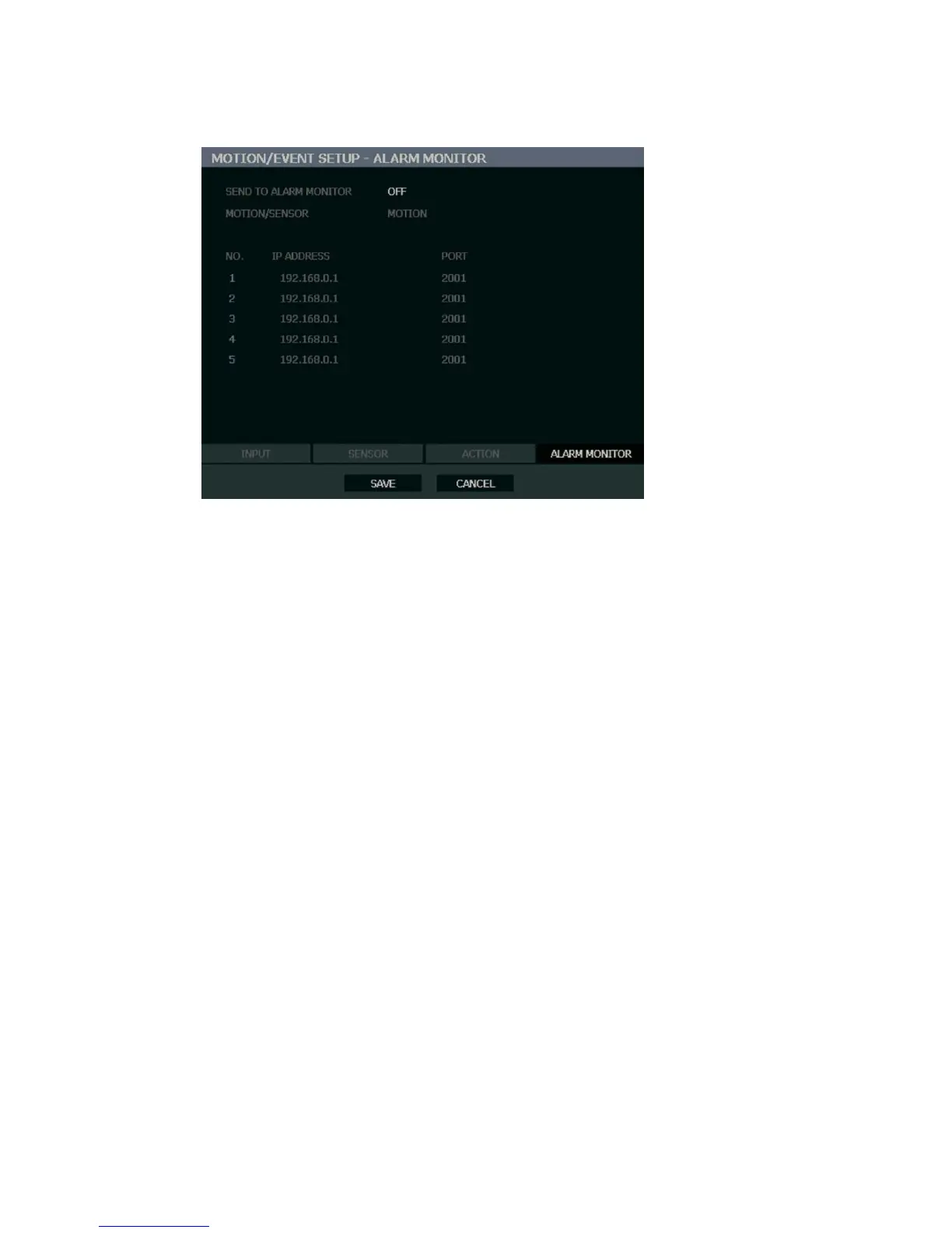 1. Select SEND TO ALARM MONITOR and press ENTER to select ON.