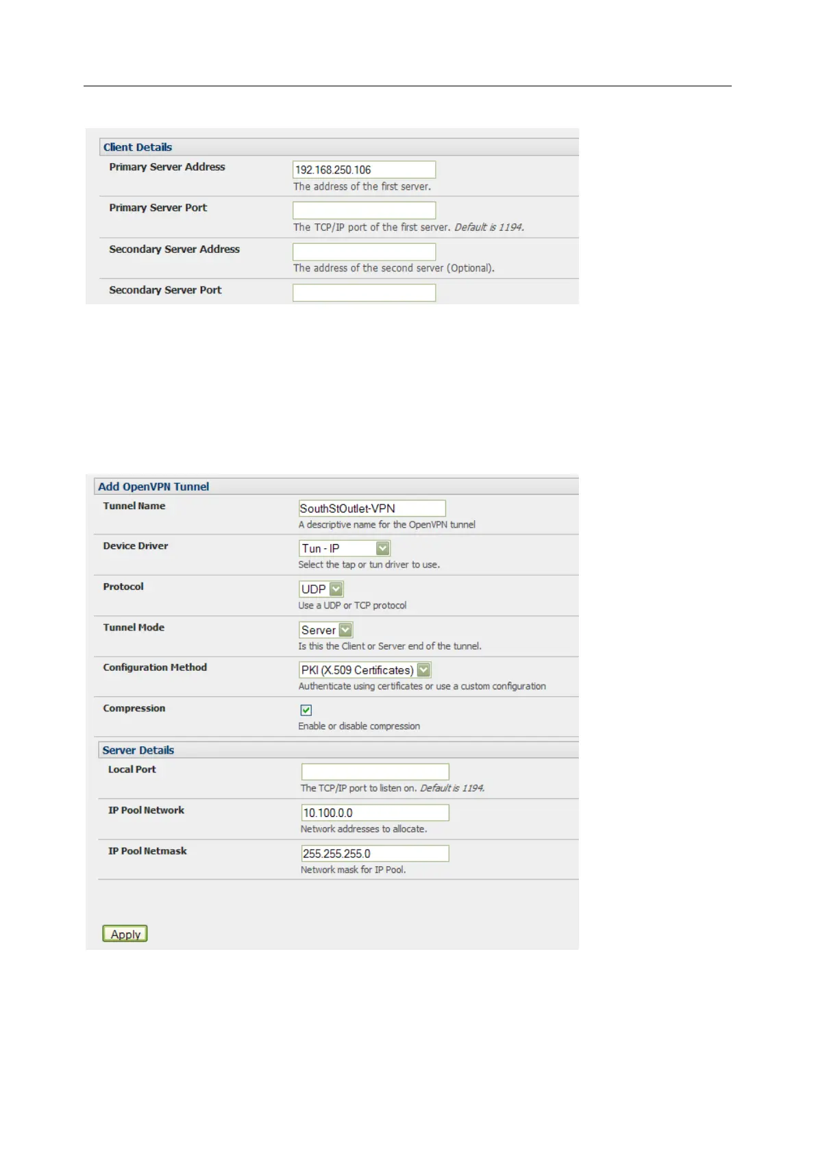 o If Client has been selected, the Primary Server Address is the address of the OpenVPN