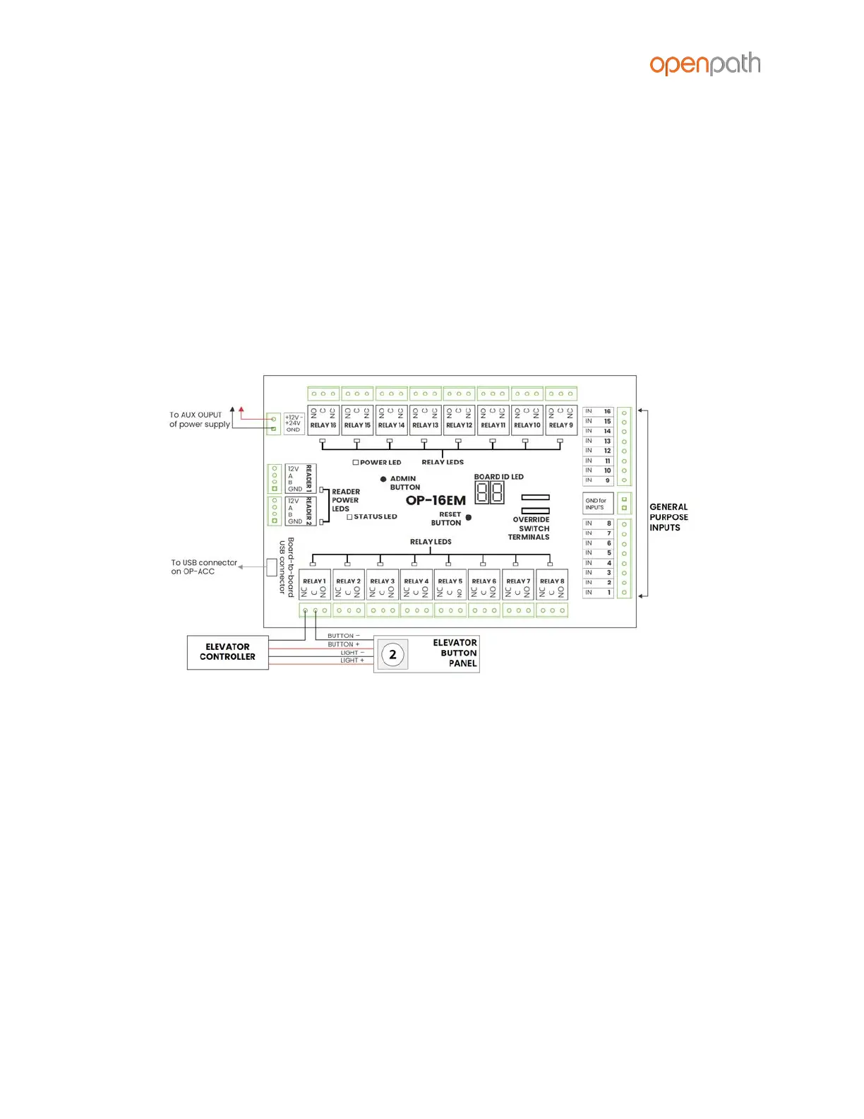 contacts for the corresponding relay on the 16 I/O Elevator Board.