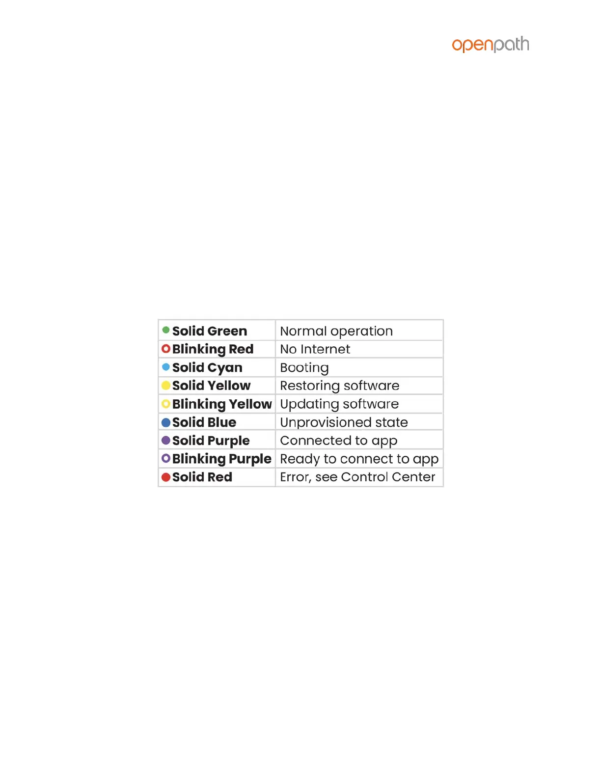 ● Blinking Purple indicates the Core is ready to connect to the Open Admin app