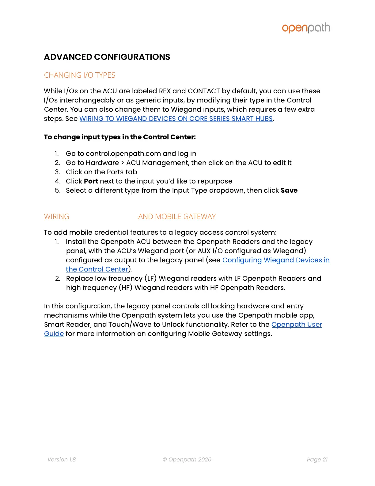 Openpath Core Series - Changing I;O Types; Wiring to Legacy Panels and Mobile Gateway