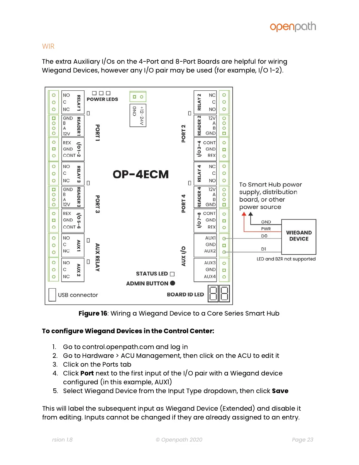 Openpath Core Series - Wiring to Wiegand Devices on Core Series Smart Hubs