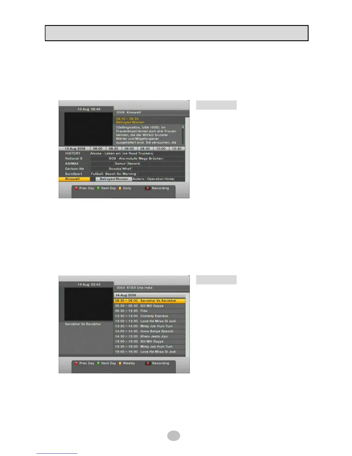 To display EPG in Daily category, press YELLOW Button and you will get below picture.
