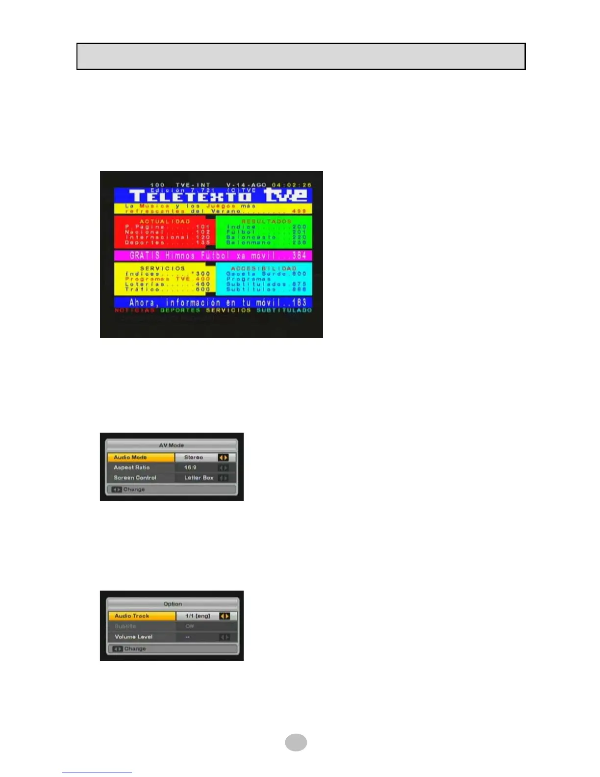 Press AV+ button on RCU to set Audio Mode [Stereo/Left/Right] and Aspect Ratio of screen [16:9/4:3]