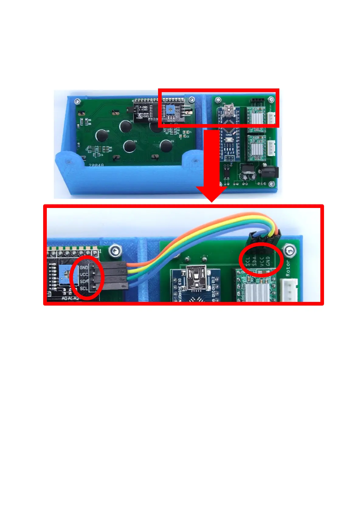 Wire the connections according to their labels. (GND-GND / VCC-VCC / SDA-SDA / SCL-SCL)