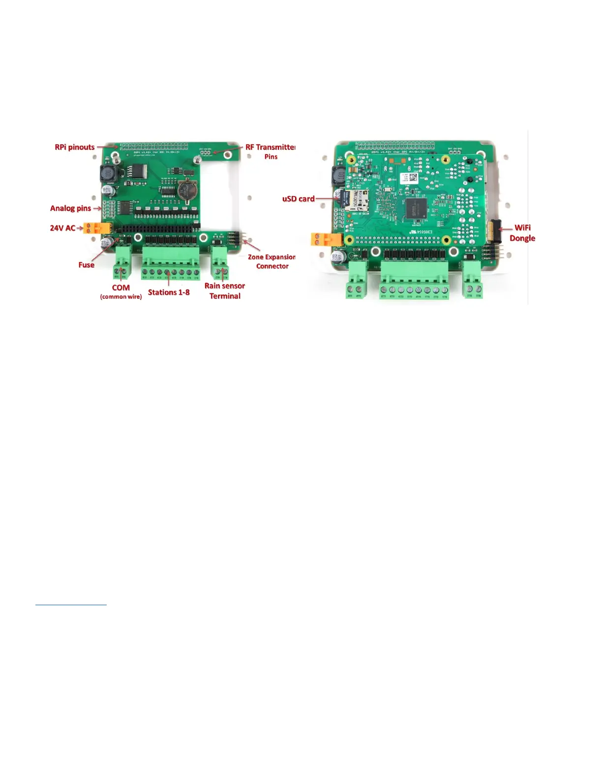 Insert the sprinkler transformer wires into the orange terminal, then plug it into the matching terminal on OSPi. The