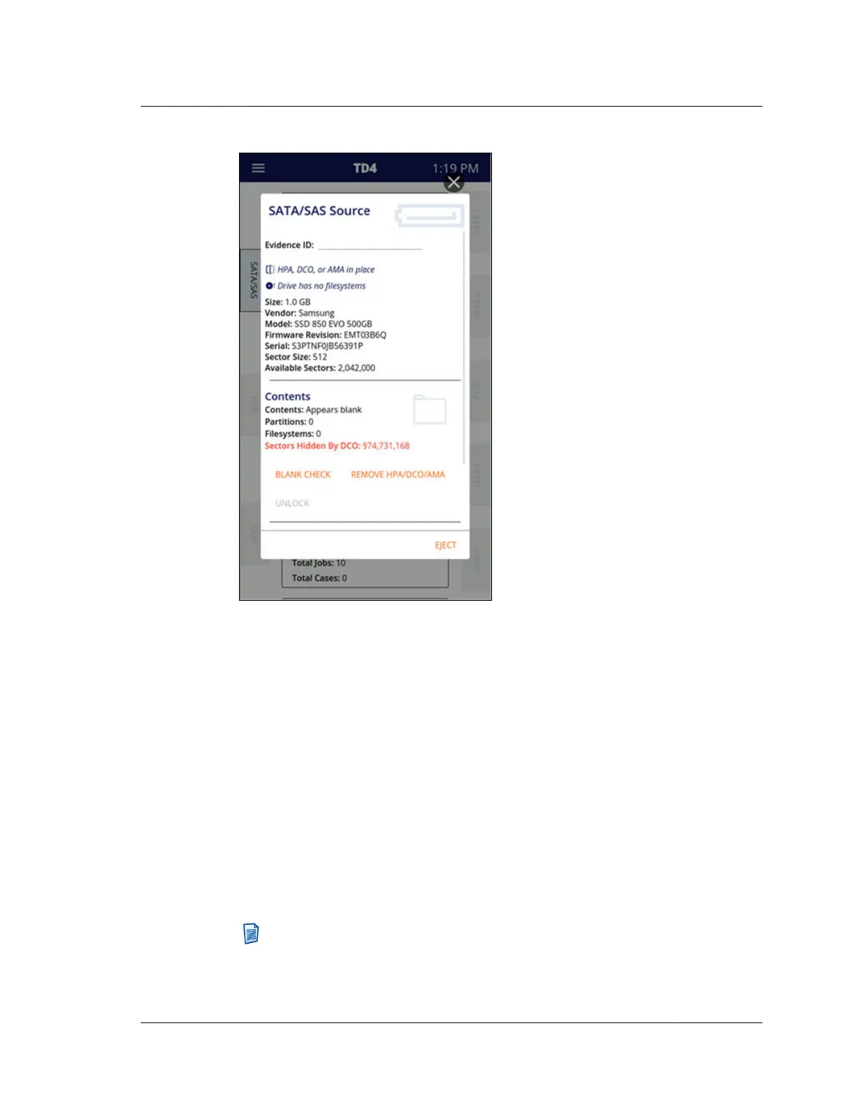 Note: Specifically for IDE drives connected via TDA7-5, the forensic log for a