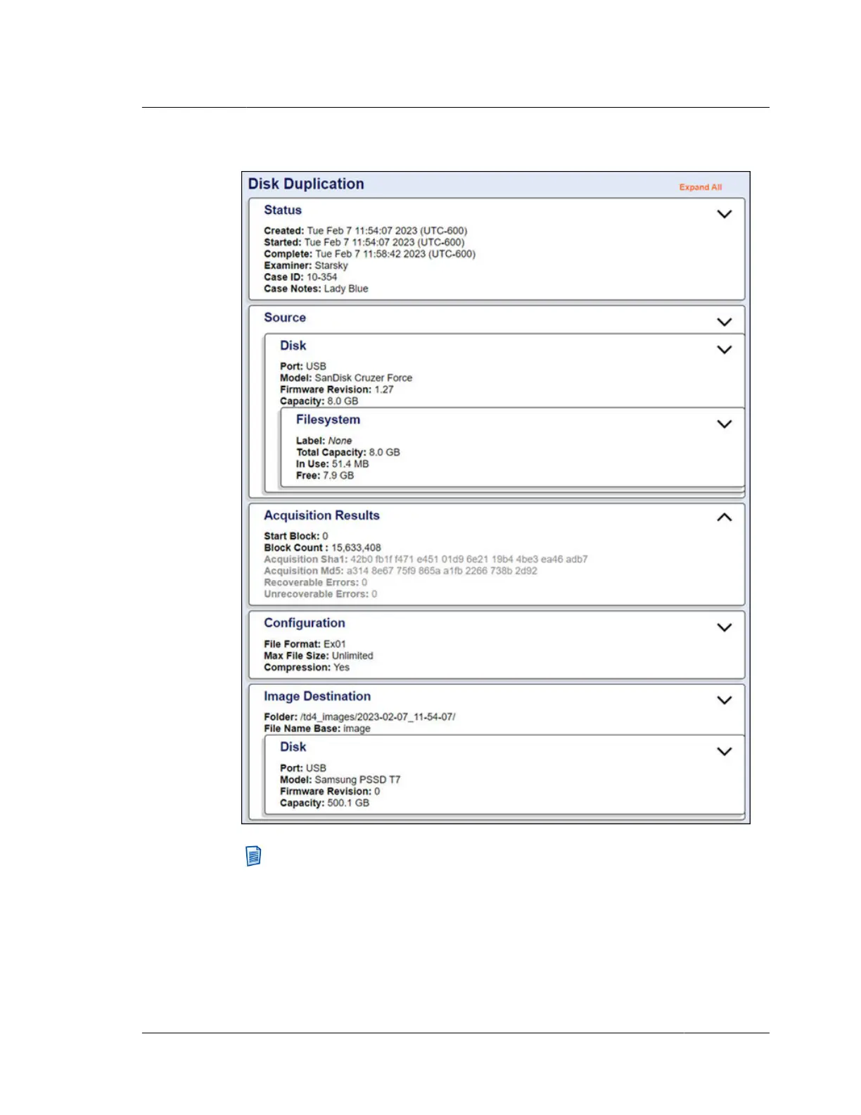 Sample Log 1 – Successful EX01 Duplication