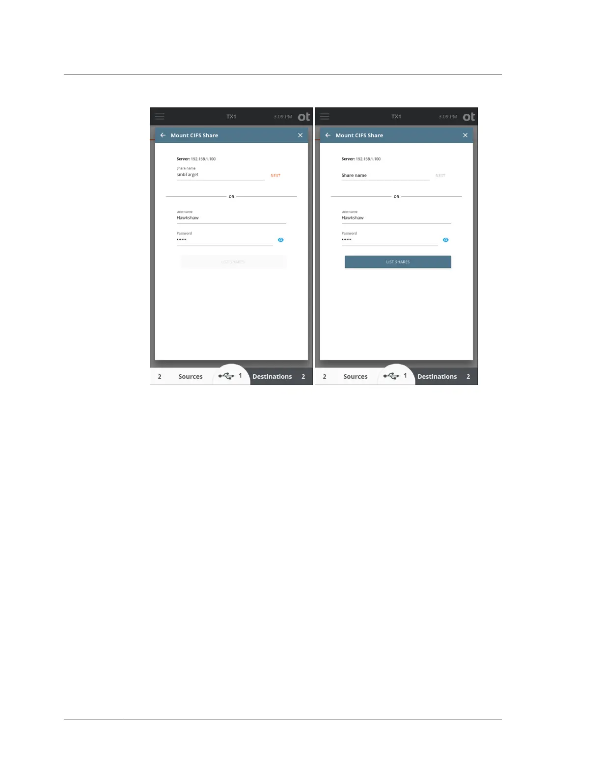 4. If you chose to use the List Shares feature, a list of available shares will be