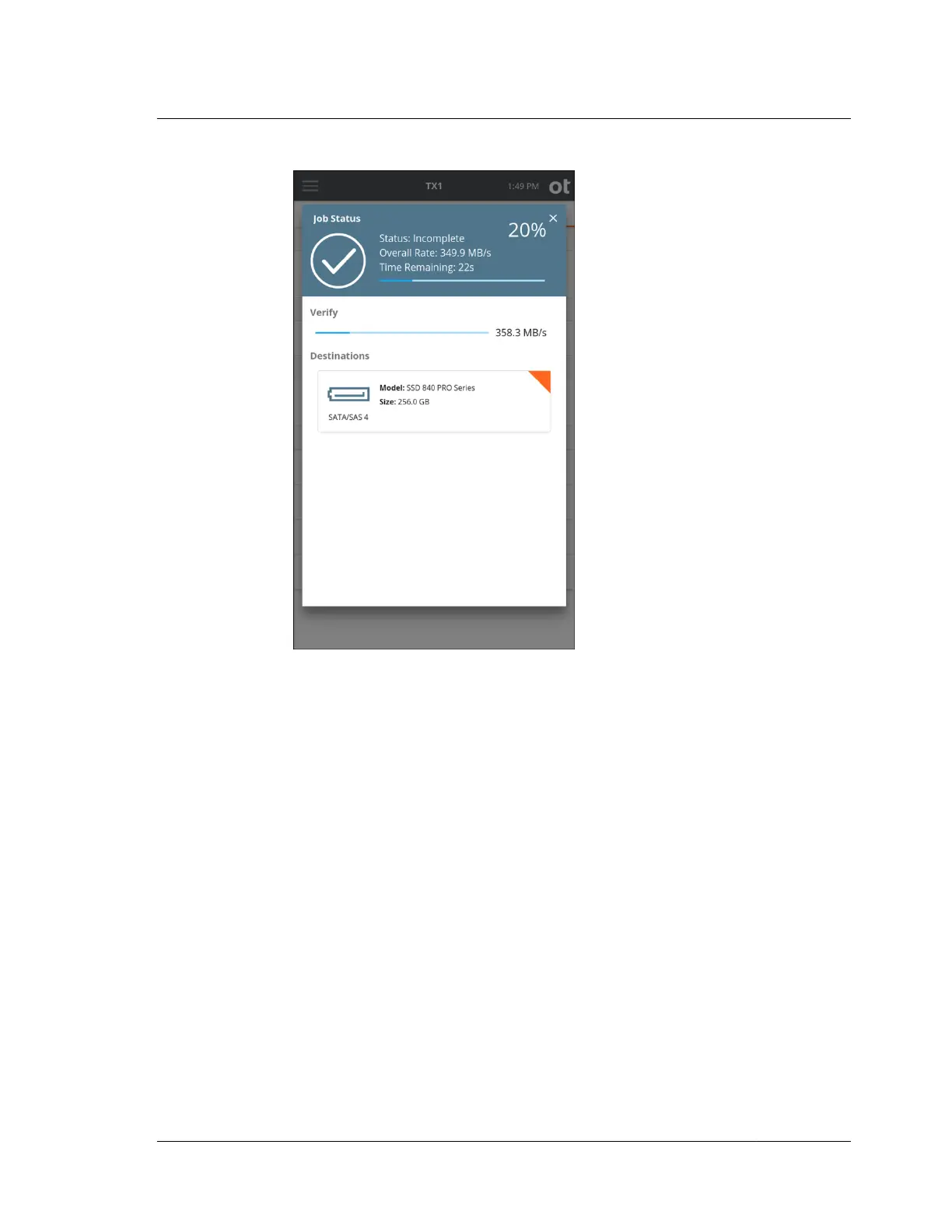 5. To cancel the Verify operation, tap the Cancel button from the Jobs summary
