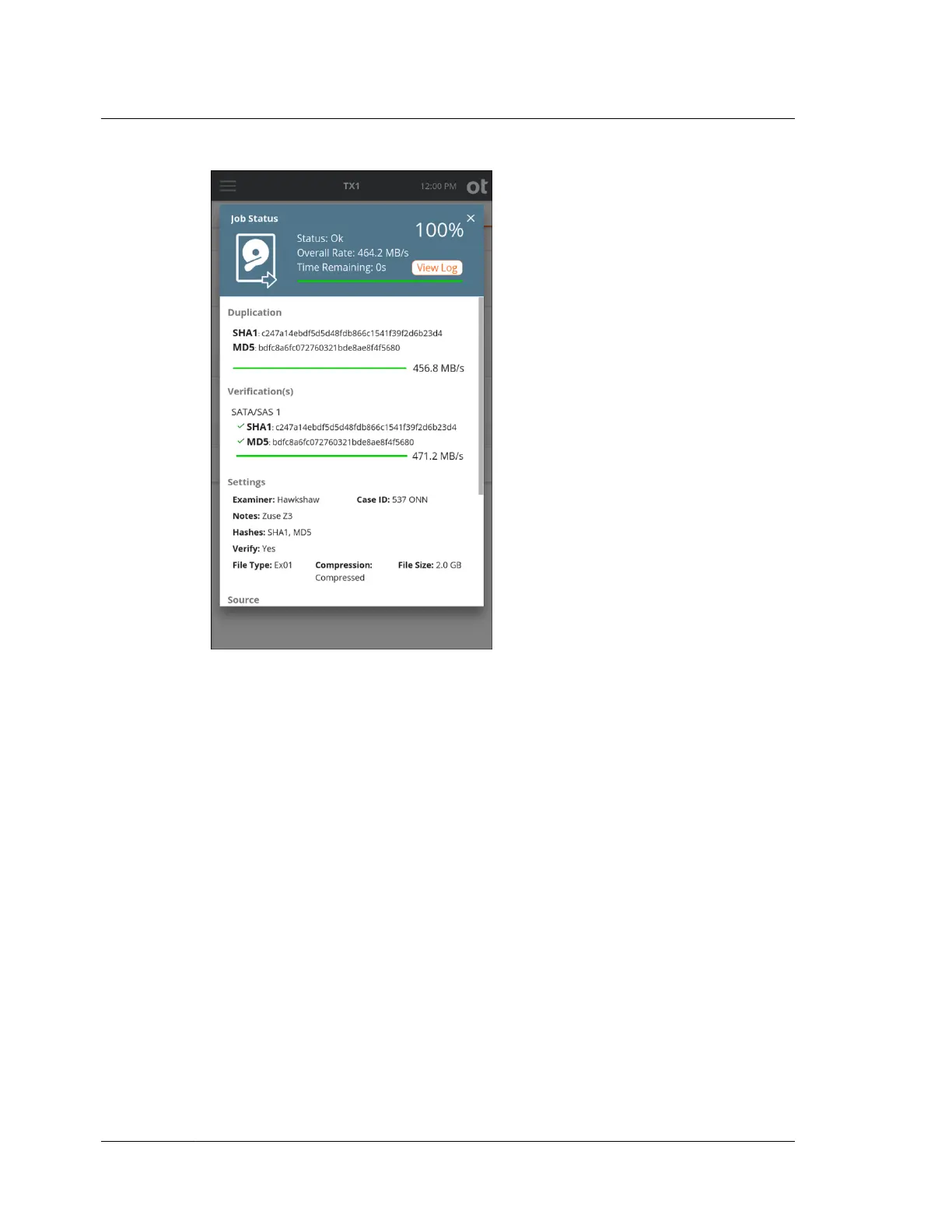 You can easily click back to the Job Status screen or close the log and return to the