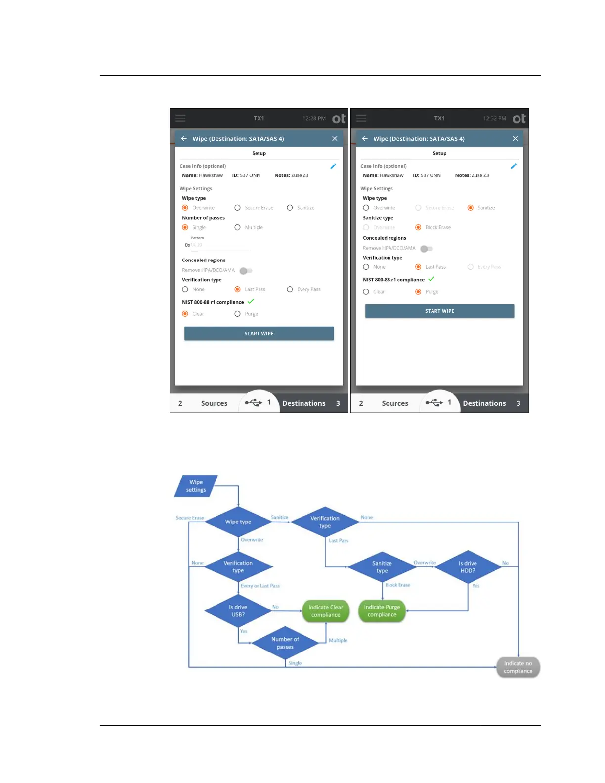The following flowchart depicts how TX1 determines wipe setting conformity to