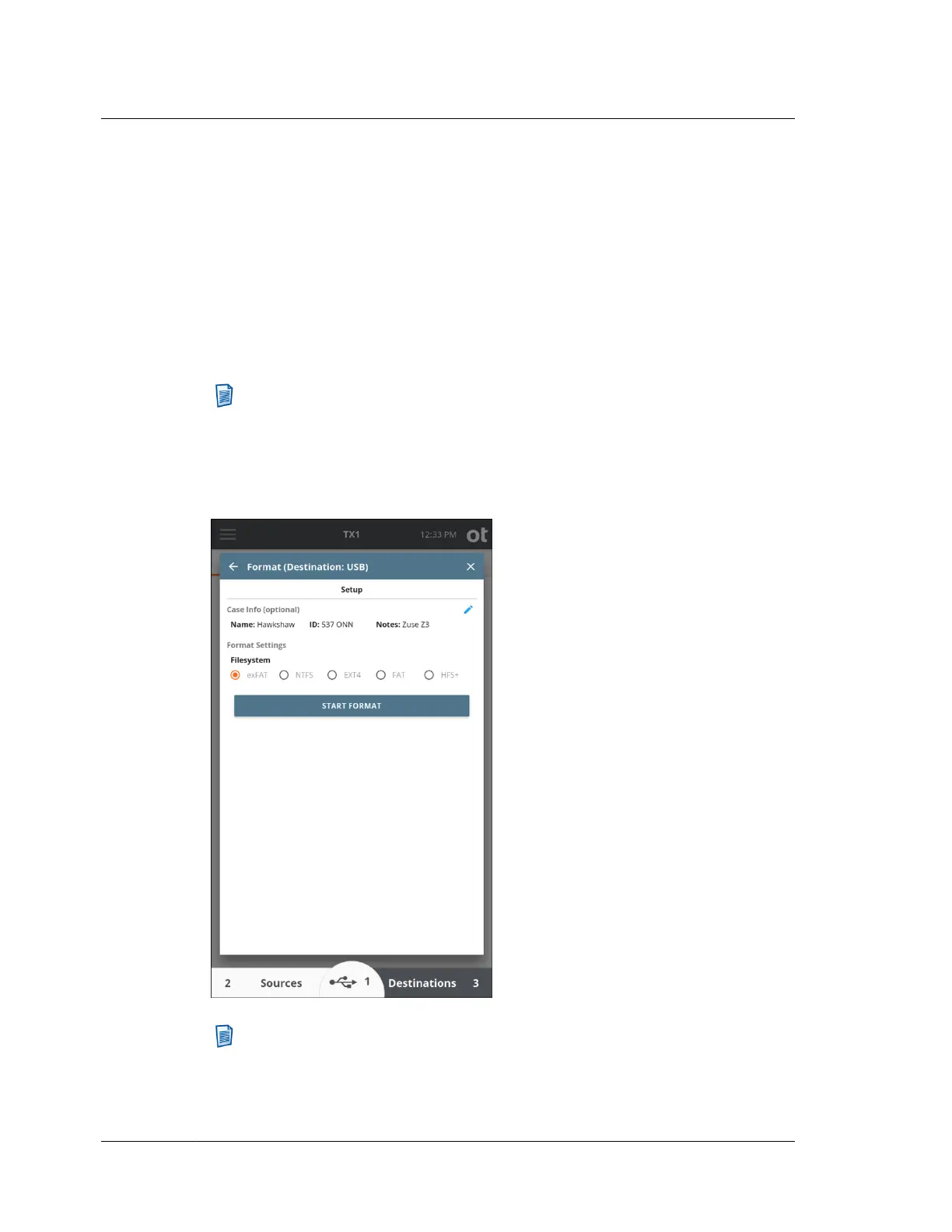 format, TX1 will format the drive as FAT32. However, job logs (including the