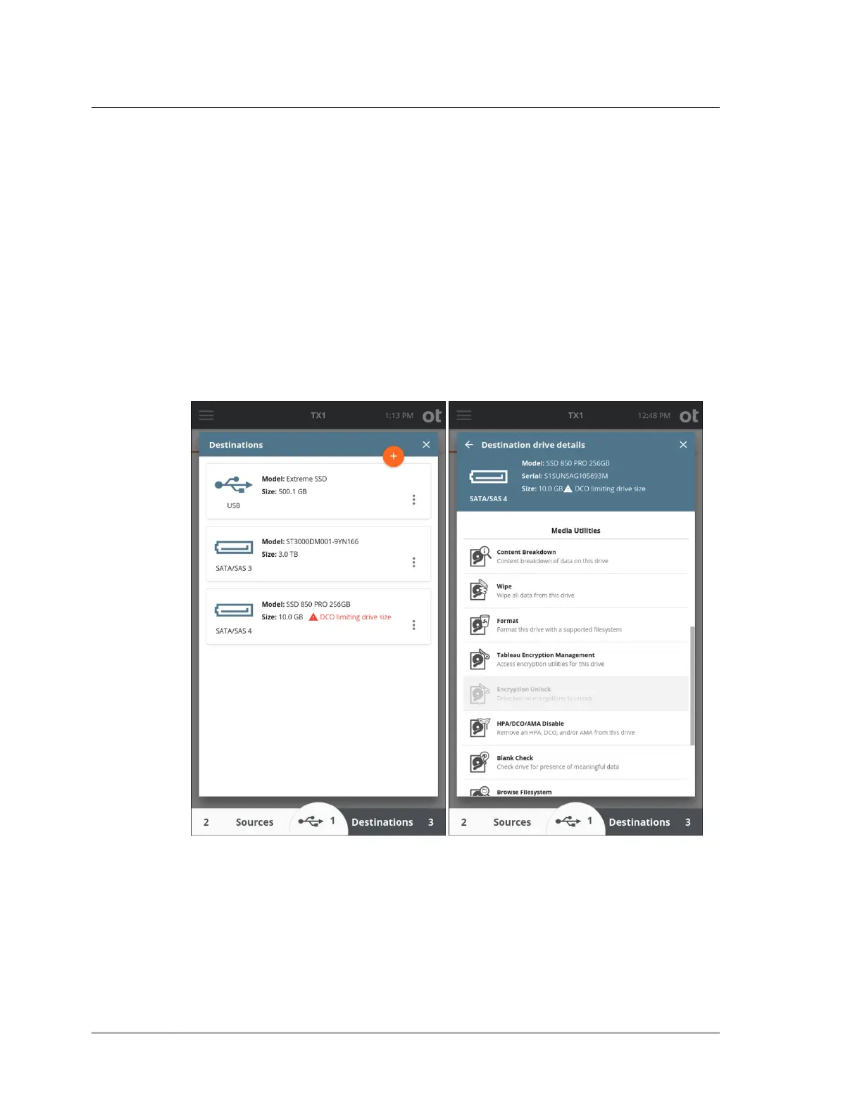 drive. Drive details can be viewed through the Sources and Destinations areas of