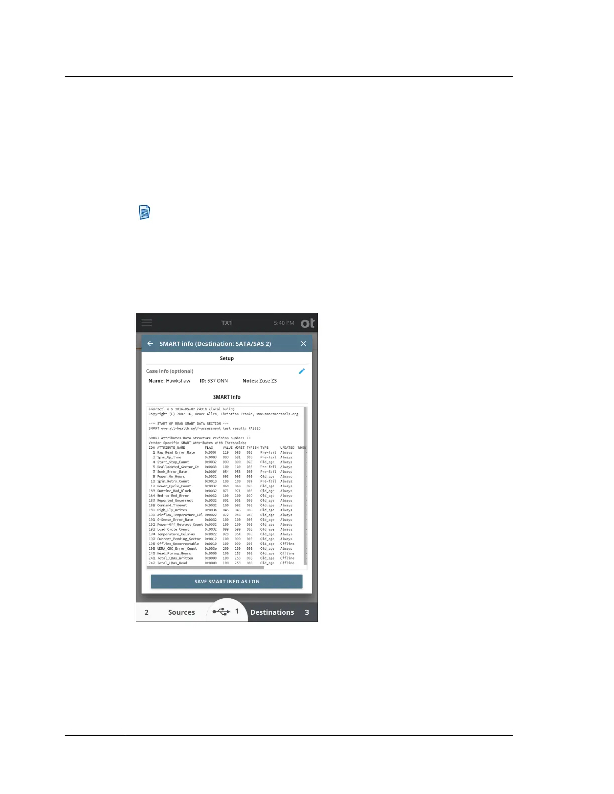 Selecting this feature will display available SMART data as reported by the drive.