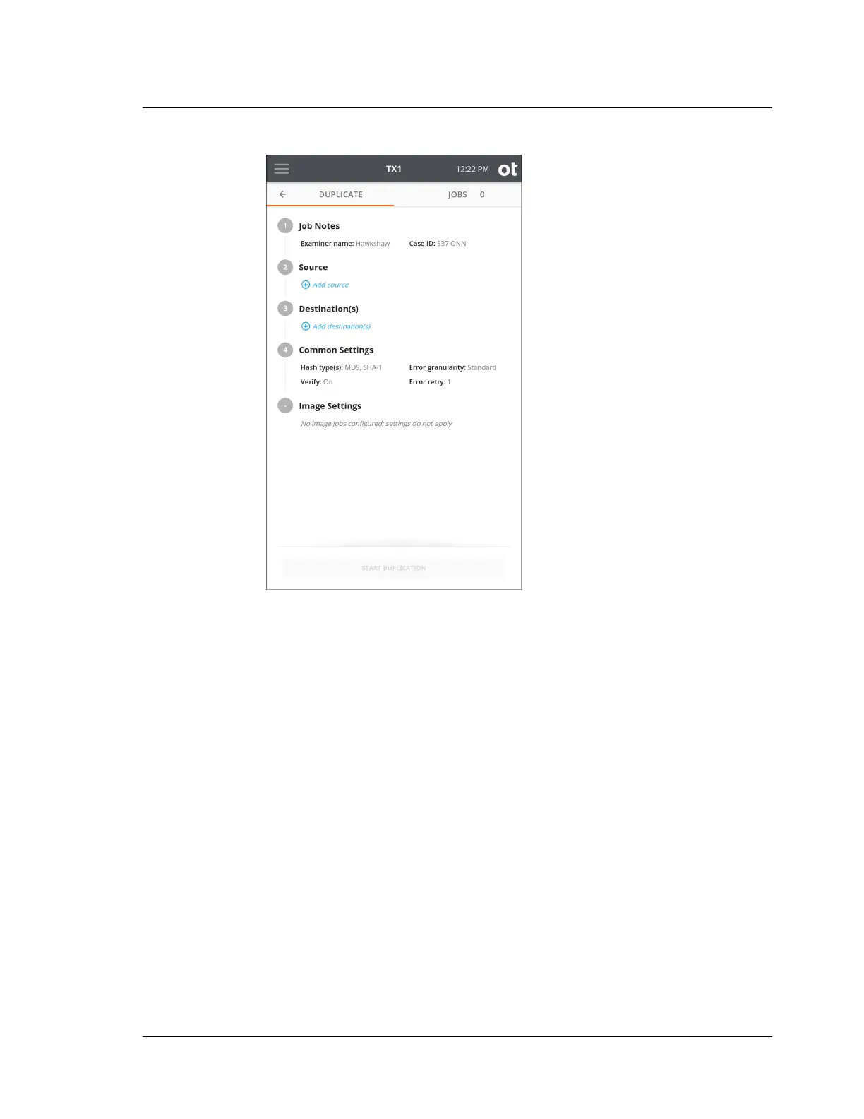 section. Tap a text box to modify or enter Name, Case ID, or Notes values and