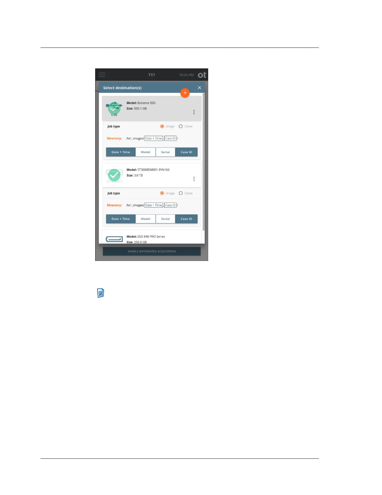 buttons (Date and Time, Model, Serial, or Case ID) under the directory path to