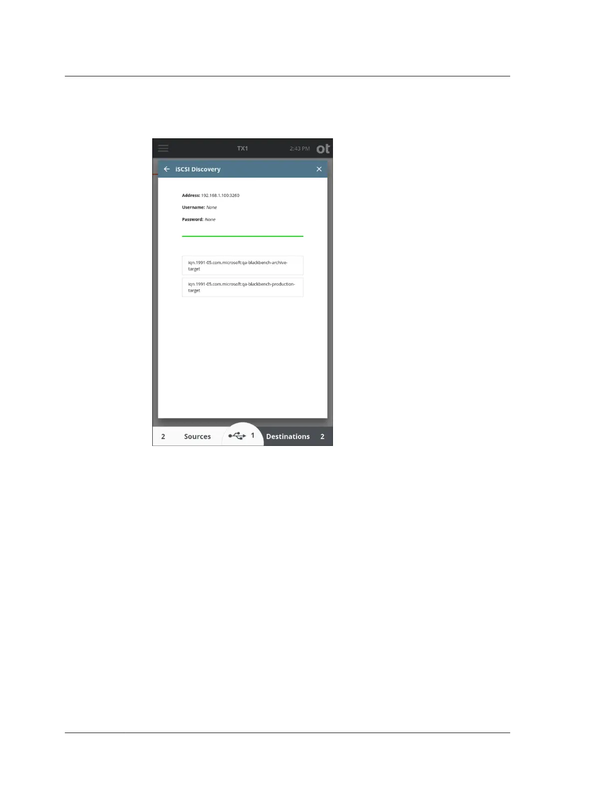 4. Tap an iSCSI target and the iSCSI Login screen is displayed. If needed, enter a