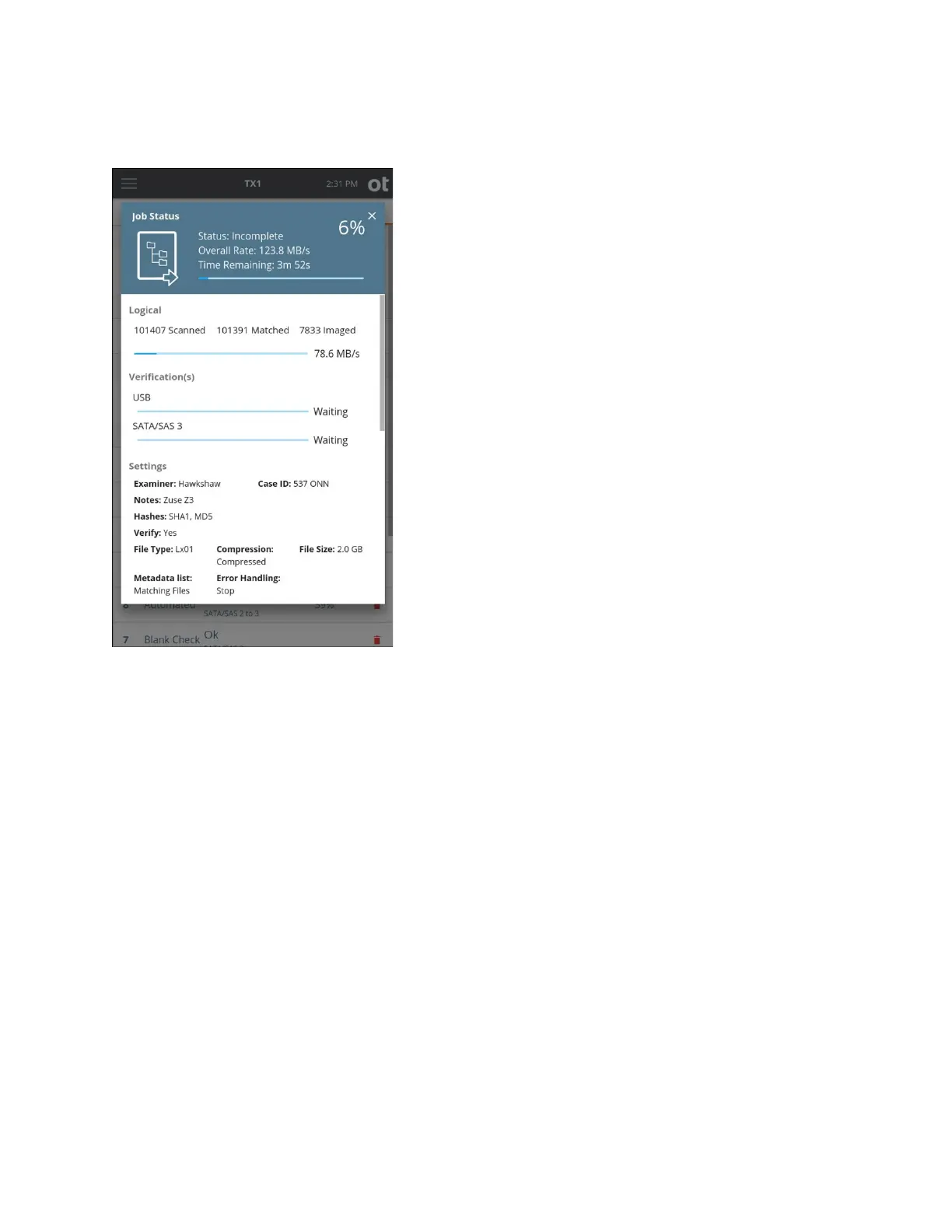 tatus screen is similar to other TX1 job types, with the following notable differences: