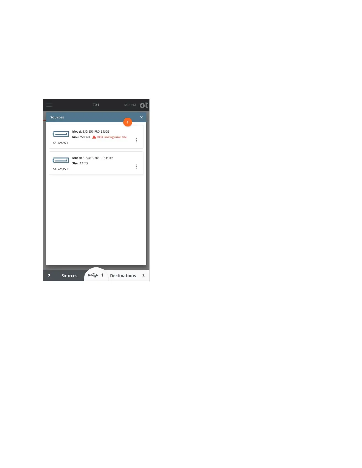 Tap the Sources or Destinations button on the Home screen to display the list of