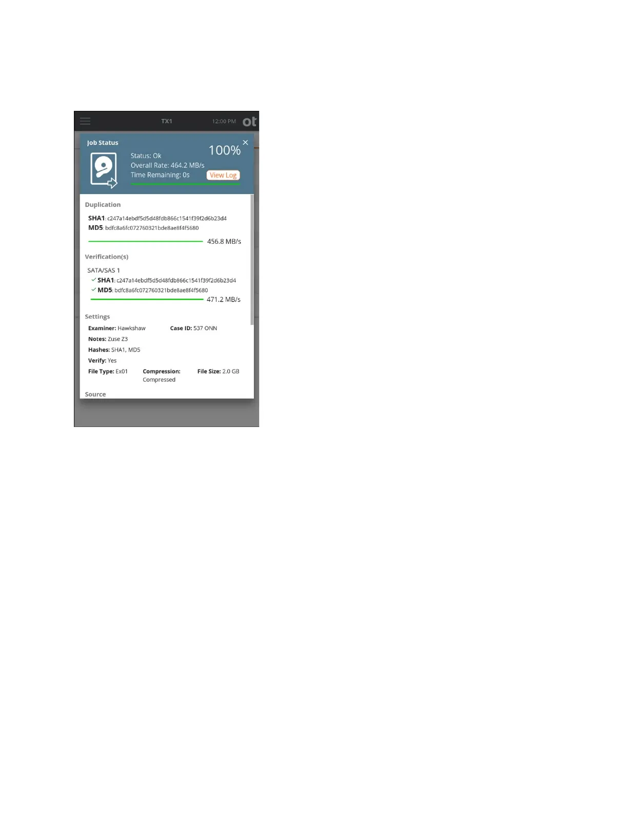he View Log link immediately displays the detailed text log for that job. You can