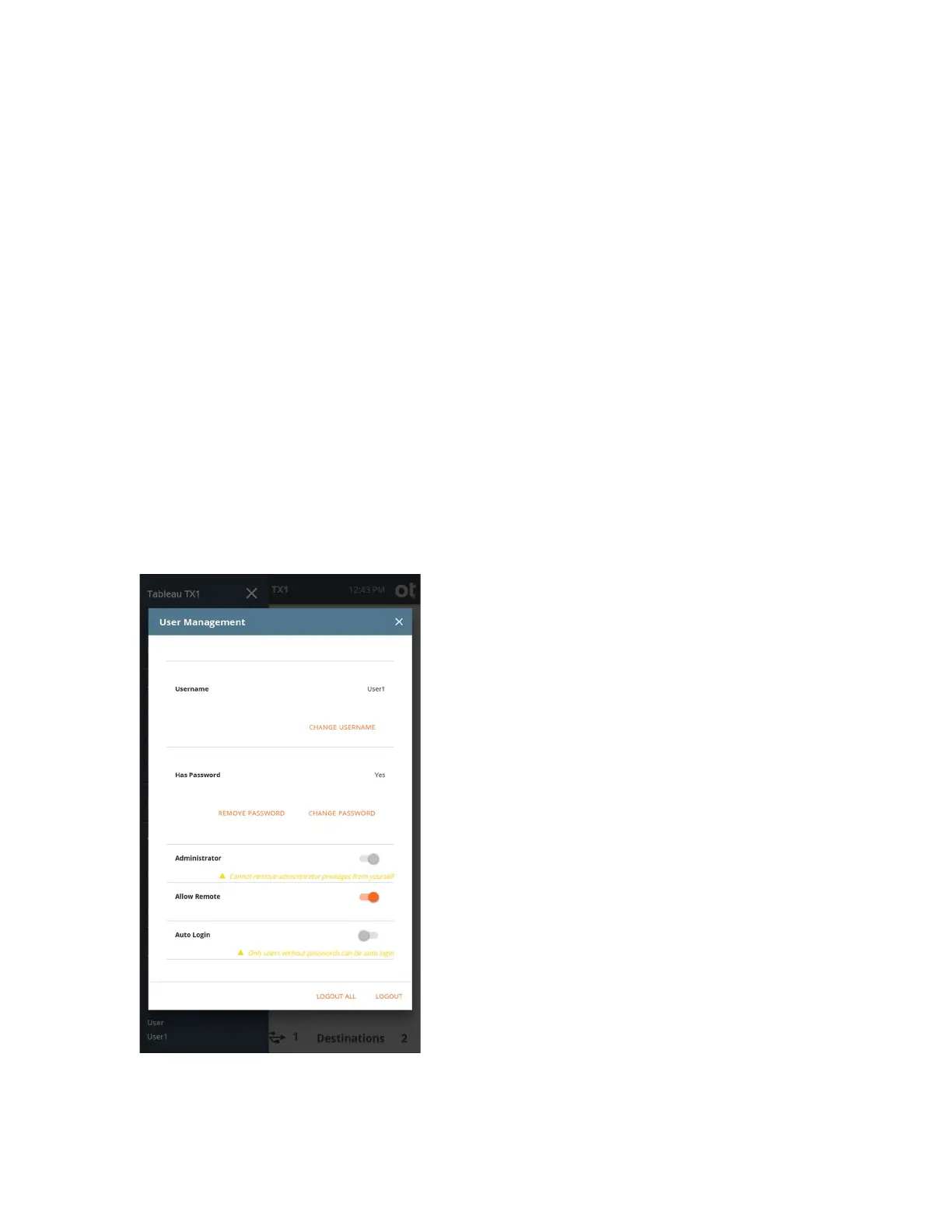 password and remote access is enabled. In the example below, default user User1 is