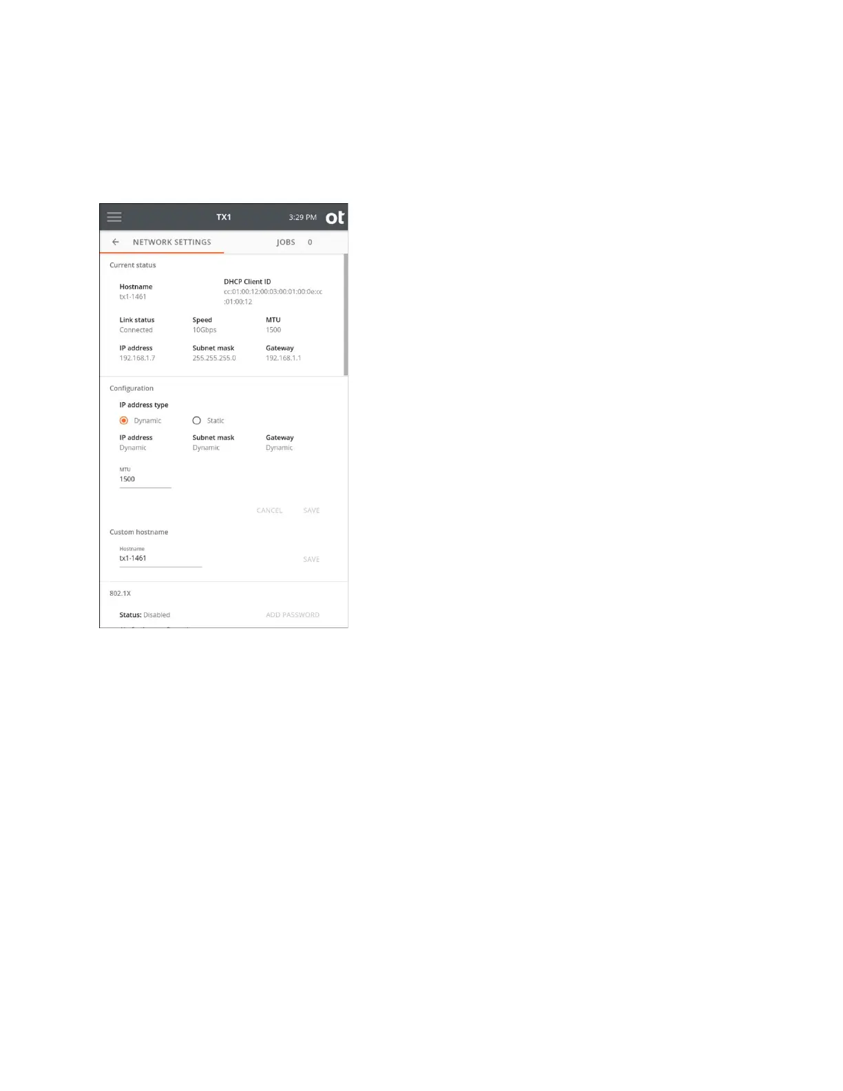 address, MTU (maximum transmission unit) value, and custom hostname. Following the
