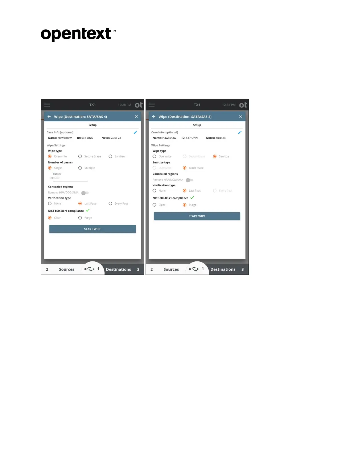 The screenshots below show examples of NIST Clear and NIST Purge compliant drive