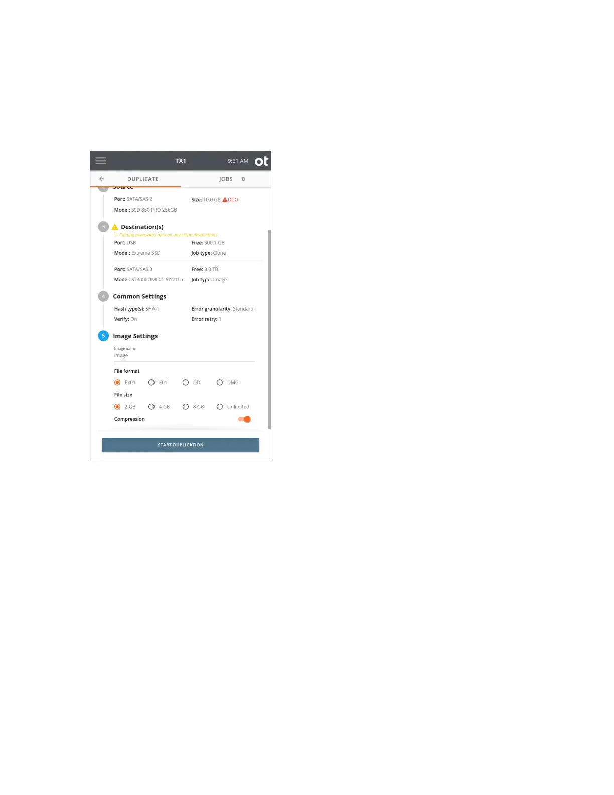 8. Once you are satisfied with your settings and drive selection, tap the Start