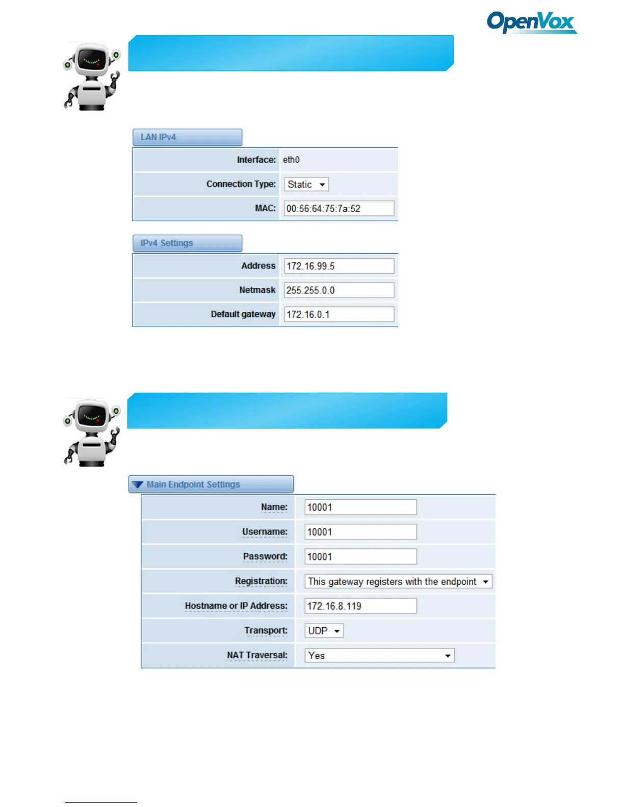 About other parameters in SIP, please set by your requirements for there is no need to set