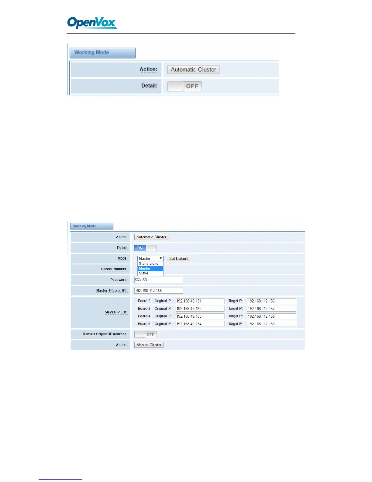 Master Mode: Run as master with two different IP, controlling up to 10 slaves.