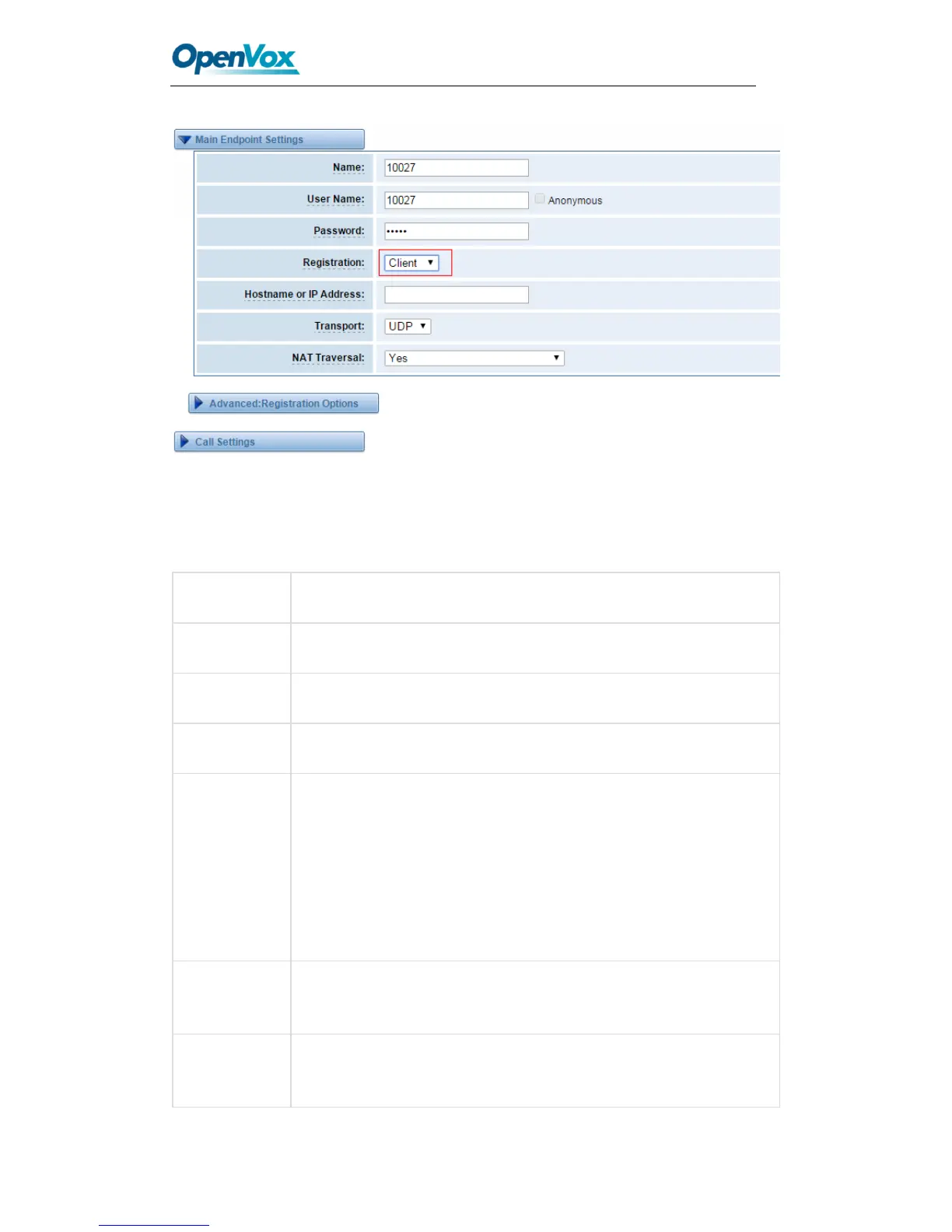 type, it means the GSM gateway acts as a client, and the endpoint