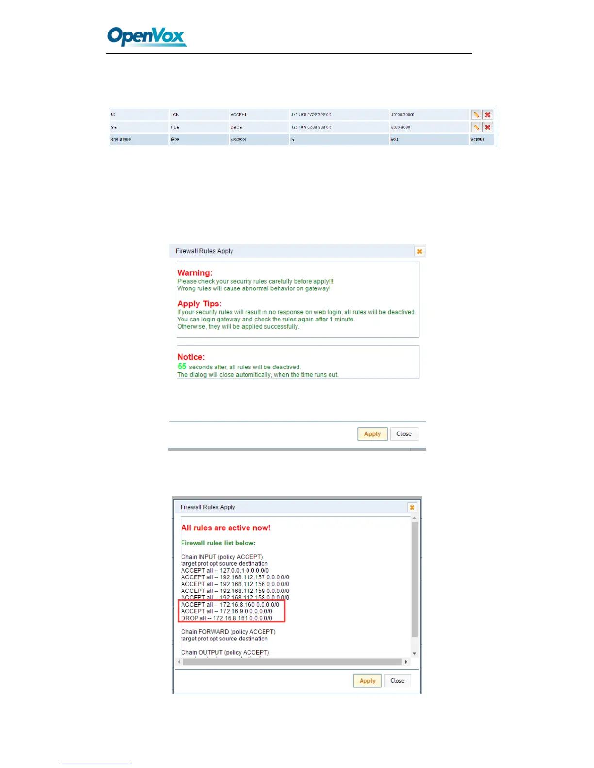 Click "submit" button to submit and apply configuration.