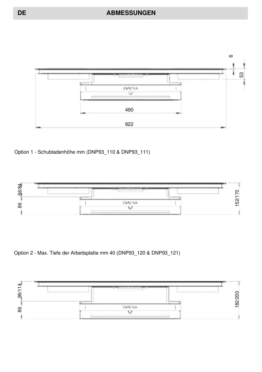 Option 1 - Schubladenhöhe mm (DNP93_110 & DNP93_111)