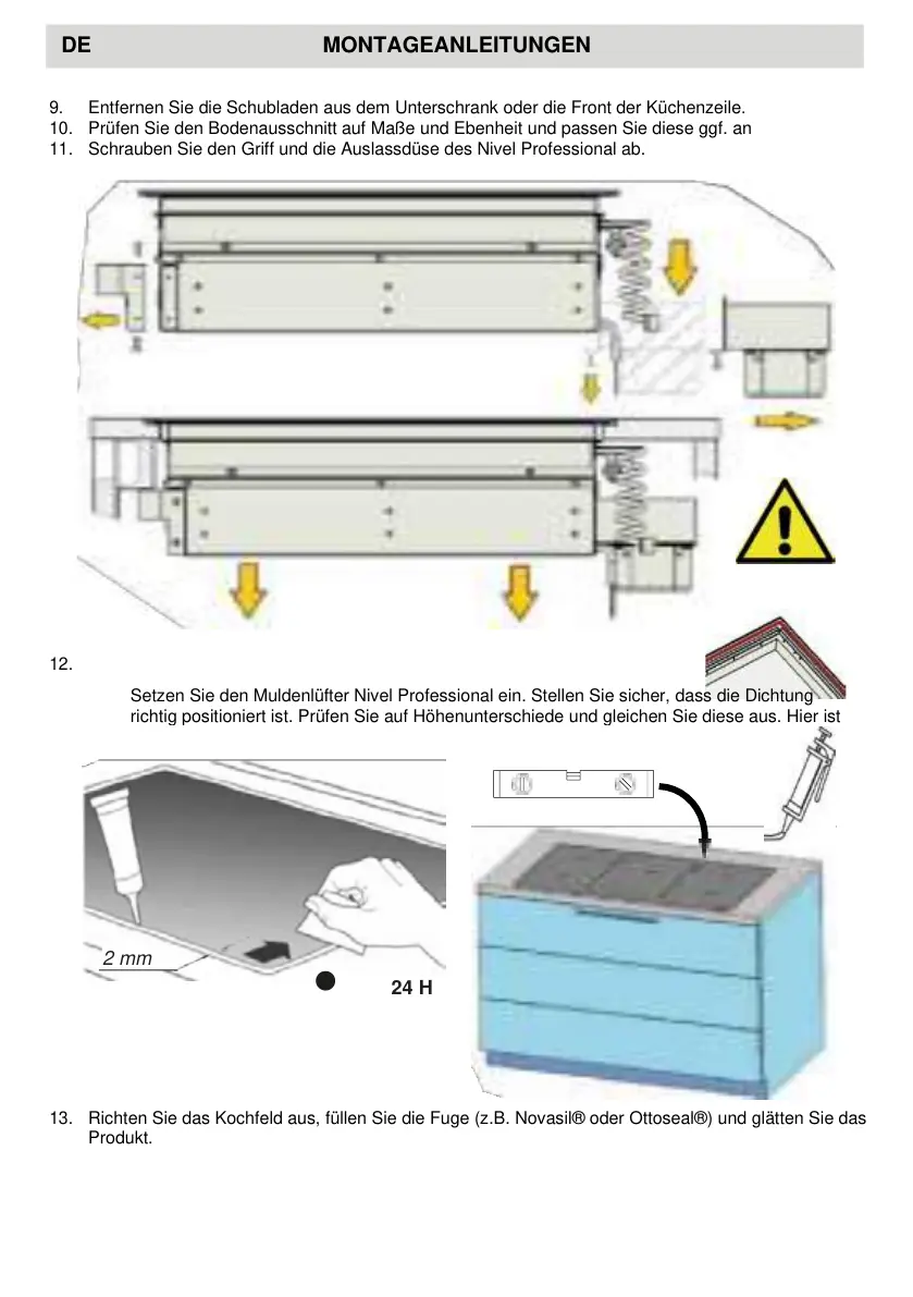Richten Sie das Kochfeld aus, füllen Sie die Fuge (z.B. Novasil® oder Ottoseal®) und glätten Sie das