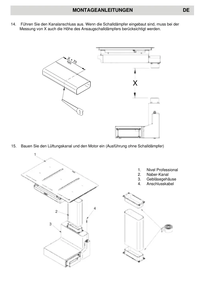 Führen Sie den Kanalanschluss aus. Wenn die Schalldämpfer eingebaut sind, muss bei der