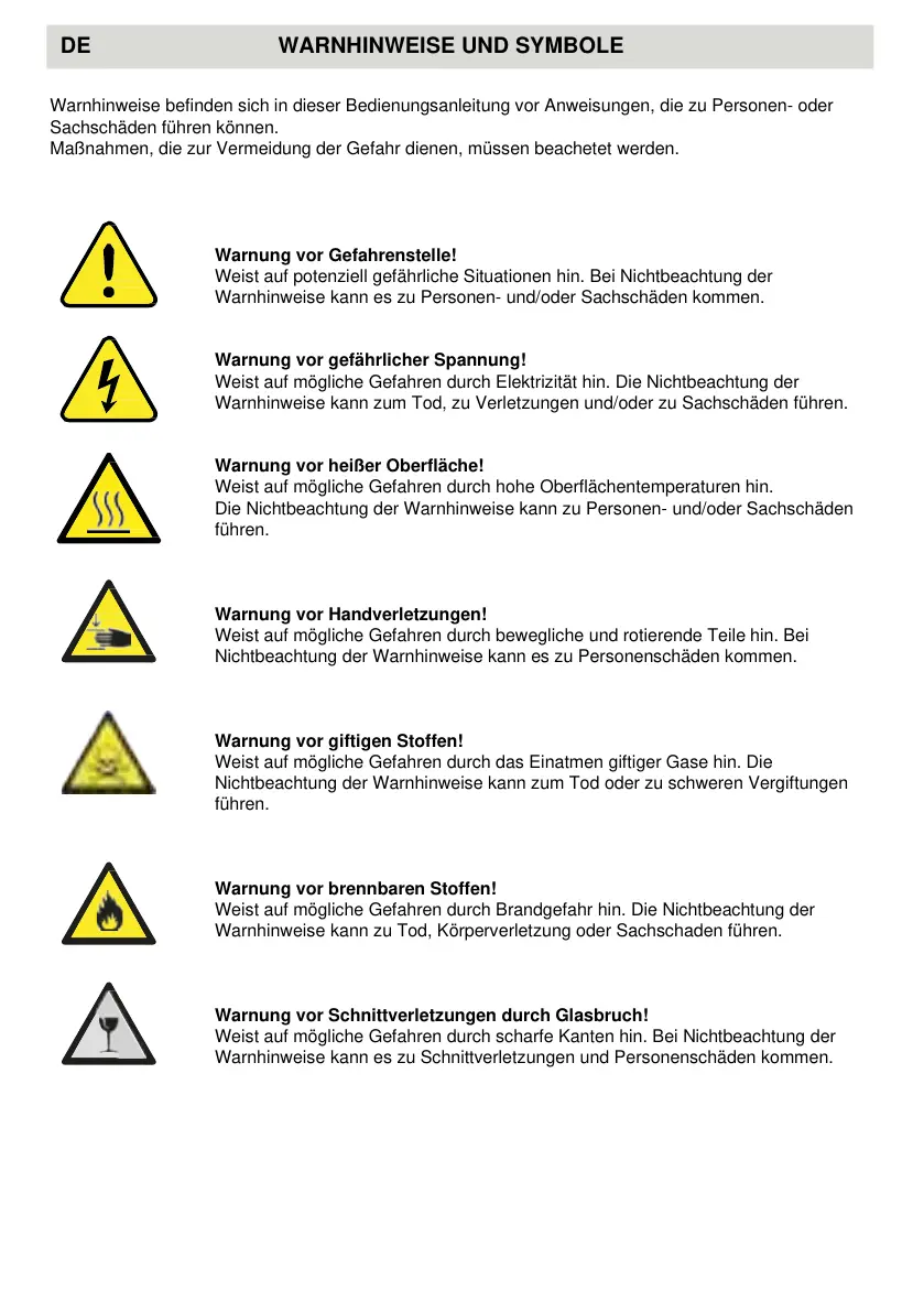Warnhinweise kann zu Tod, Körperverletzung oder Sachschaden führen.