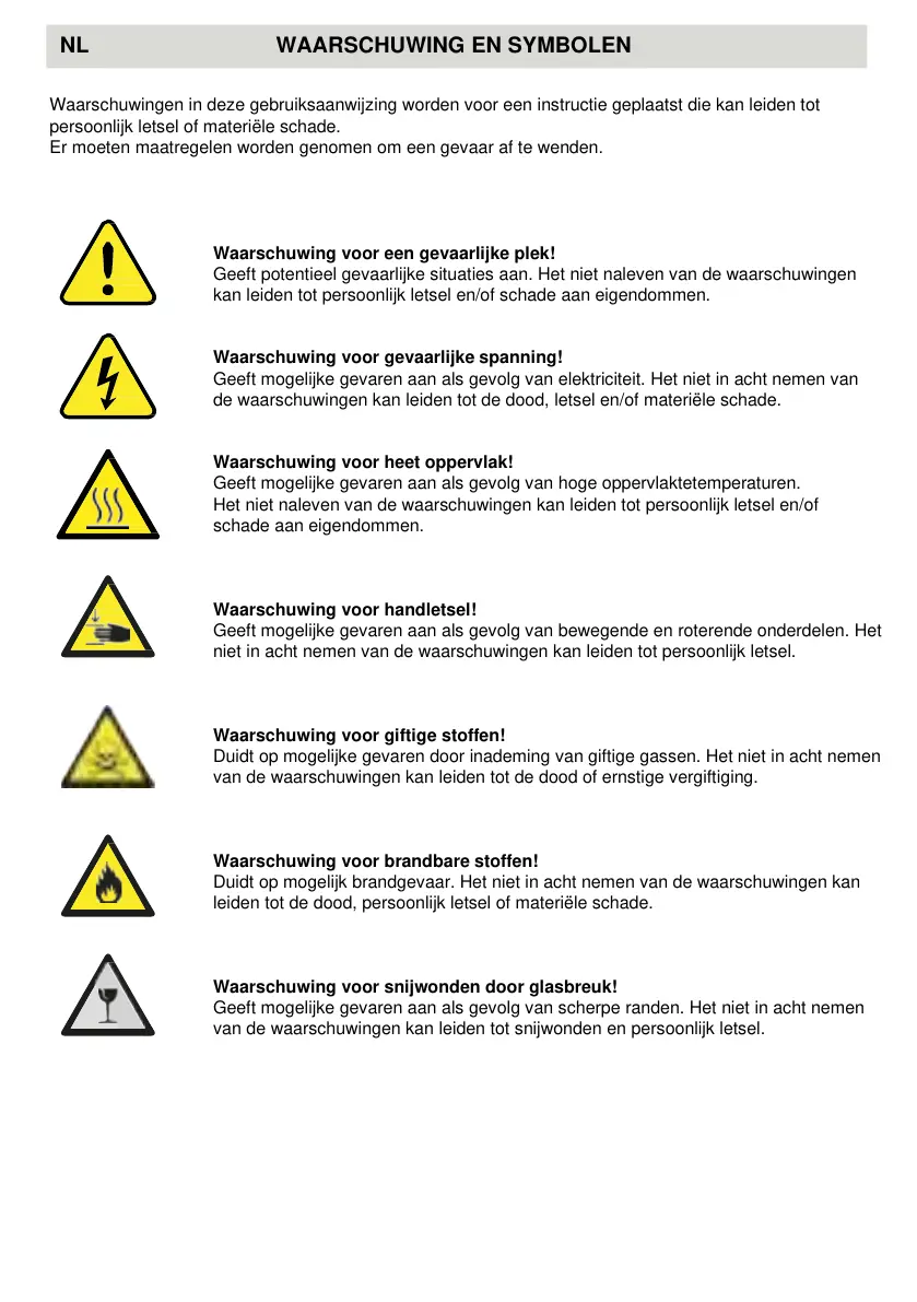 de waarschuwingen kan leiden tot de dood, letsel en/of materiële schade.