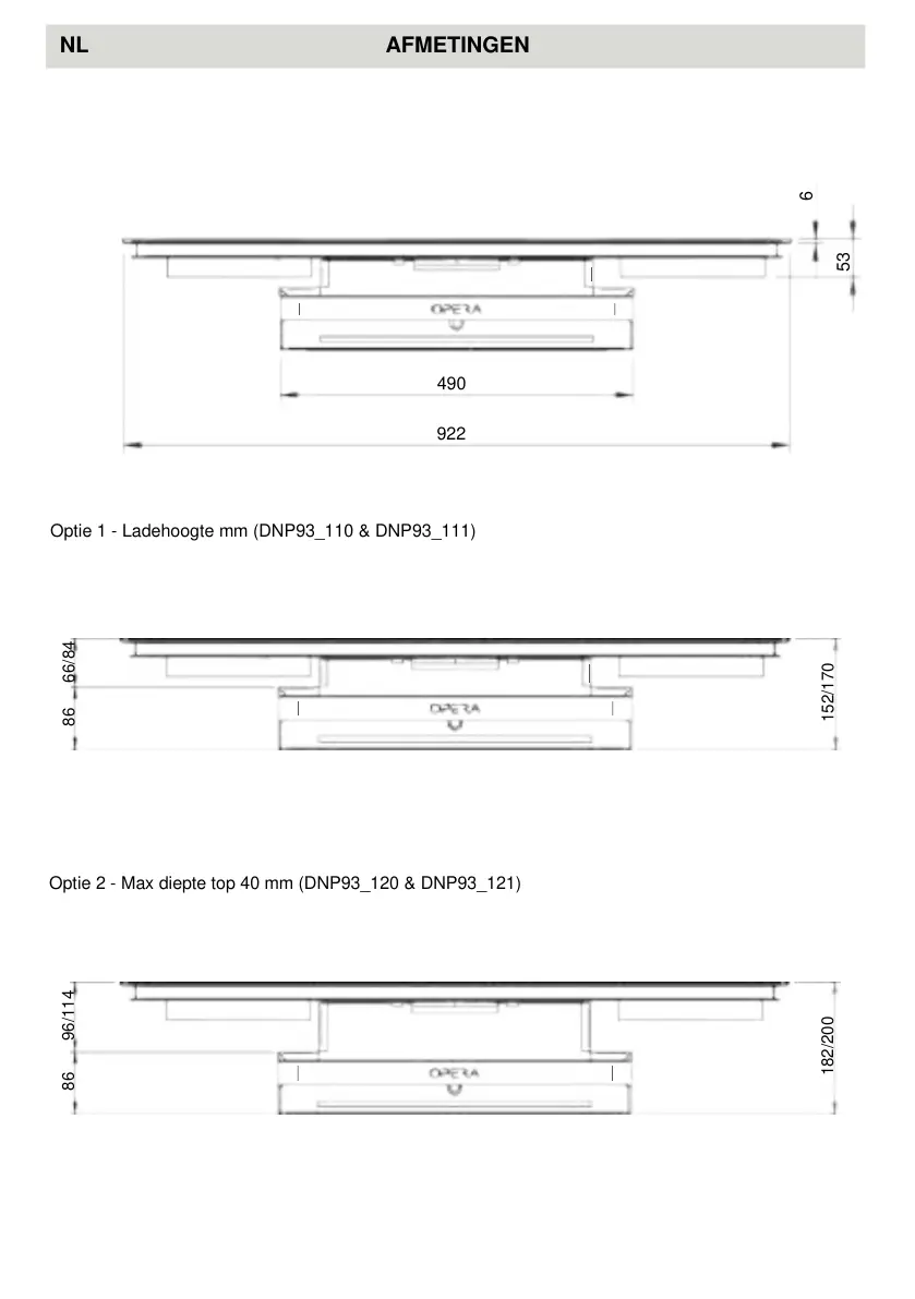 Optie 2 - Max diepte top 40 mm (DNP93_120 & DNP93_121)