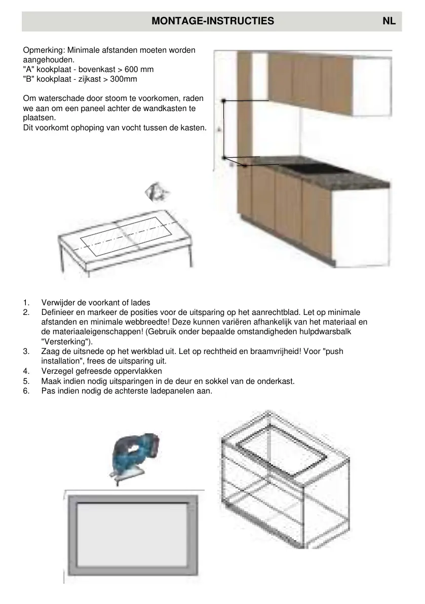 Zaag de uitsnede op het werkblad uit. Let op rechtheid en braamvrijheid! Voor "push