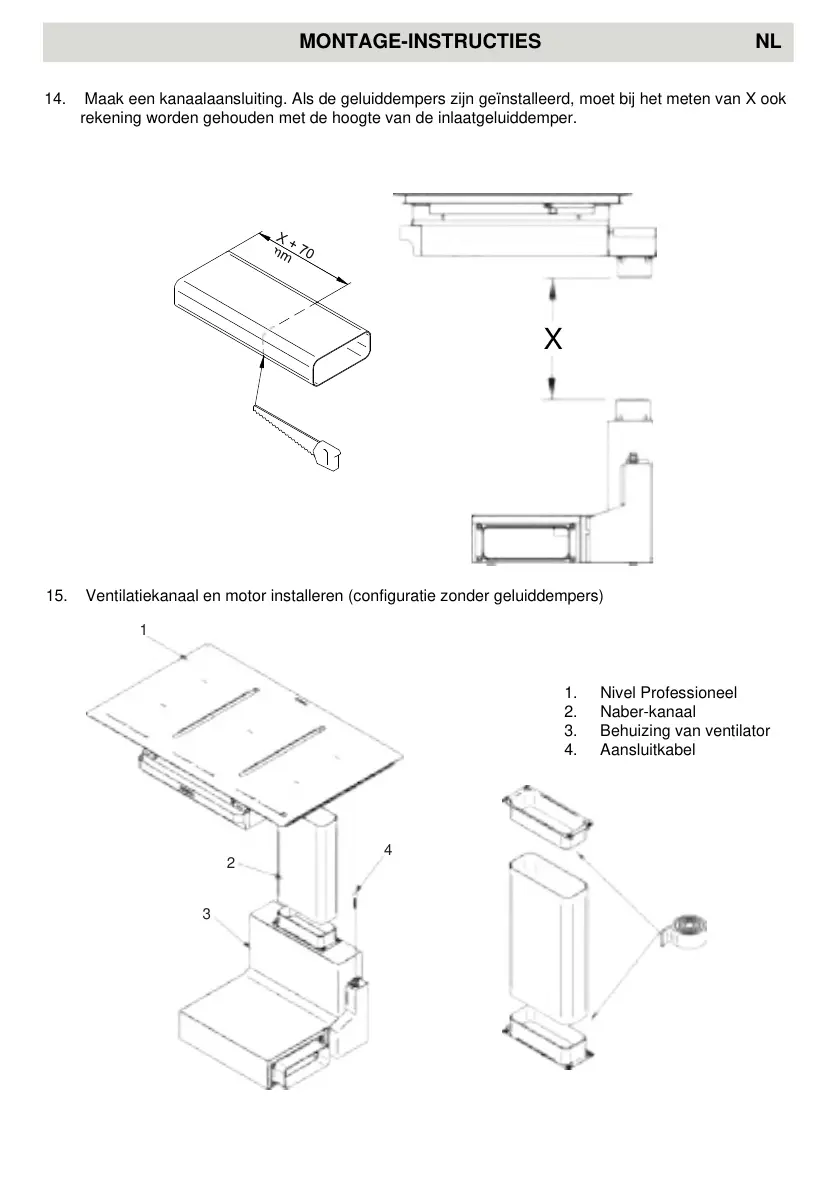 Plaats de Nivel Professional kookplaatafzuigkap. Zorg ervoor dat de