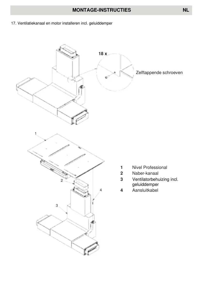 Ventilatiekanaal en motor installeren incl. geluiddemper